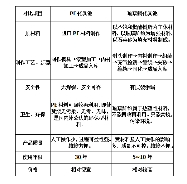 綜上,PE化糞池具有玻璃鋼化糞池的優(yōu)點(diǎn),卻比玻璃鋼化糞池更環(huán)保,質(zhì)量更好,加工時(shí)間更短,價(jià)格更便宜,所以可采用PE化糞池代替玻璃鋼化糞池。
